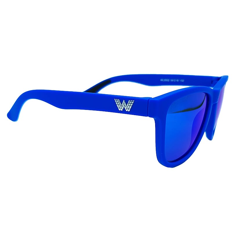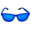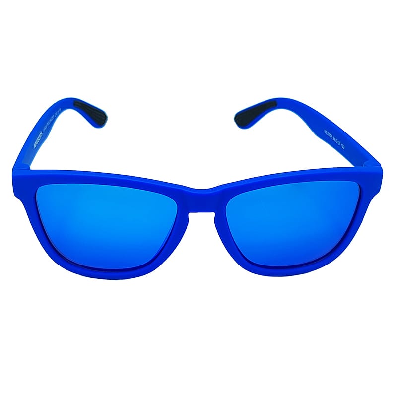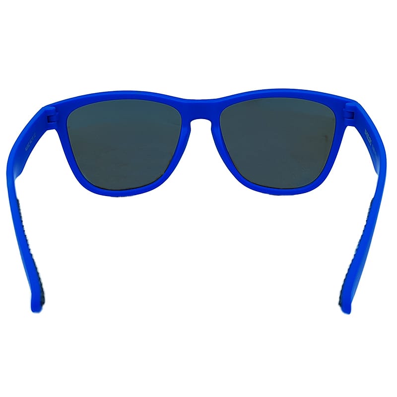 Gafas de sol polarizadas color azul con lentes polarizadas grises y espejado exterior azul.